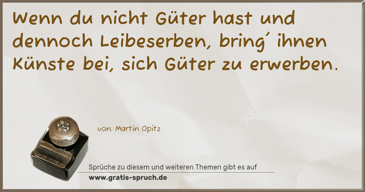 Wenn du nicht Güter hast und dennoch Leibeserben, bring' ihnen Künste bei, sich Güter zu erwerben.