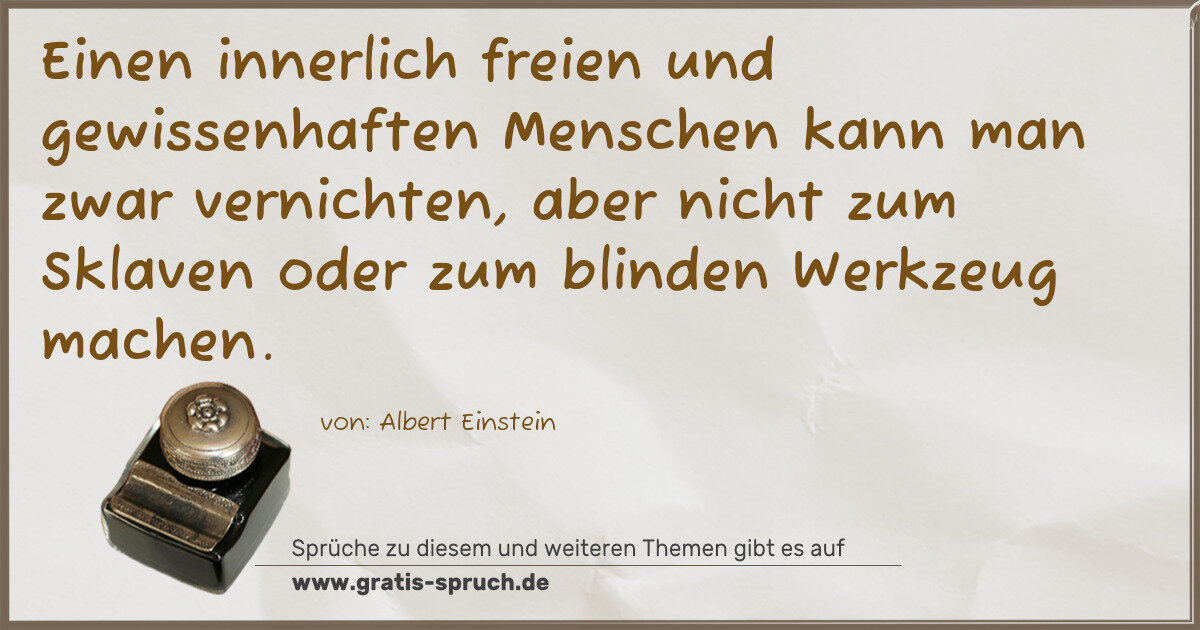 Einen innerlich freien und gewissenhaften Menschen kann man zwar vernichten, aber nicht zum Sklaven oder zum blinden Werkzeug machen.