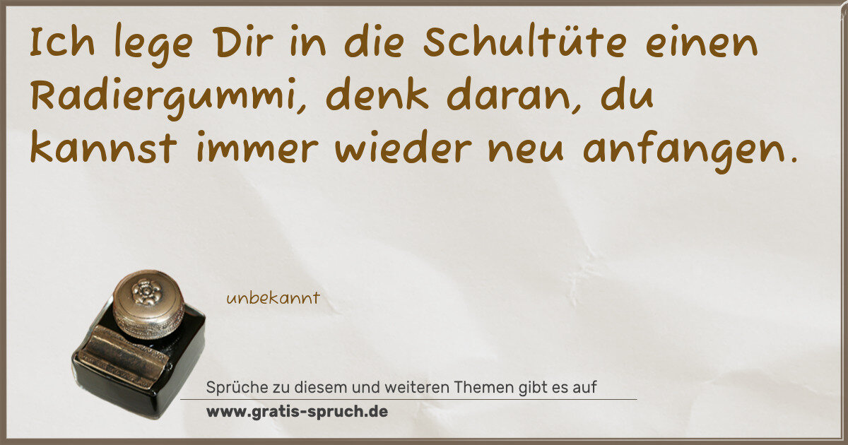 Ich lege Dir in die Schultüte einen Radiergummi, denk daran, du kannst immer wieder neu anfangen.