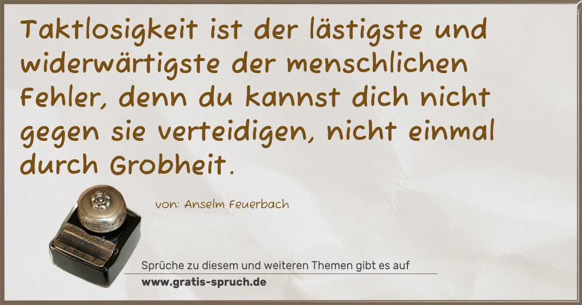 Taktlosigkeit ist der lästigste und widerwärtigste der menschlichen Fehler, denn du kannst dich nicht gegen sie verteidigen, nicht einmal durch Grobheit.