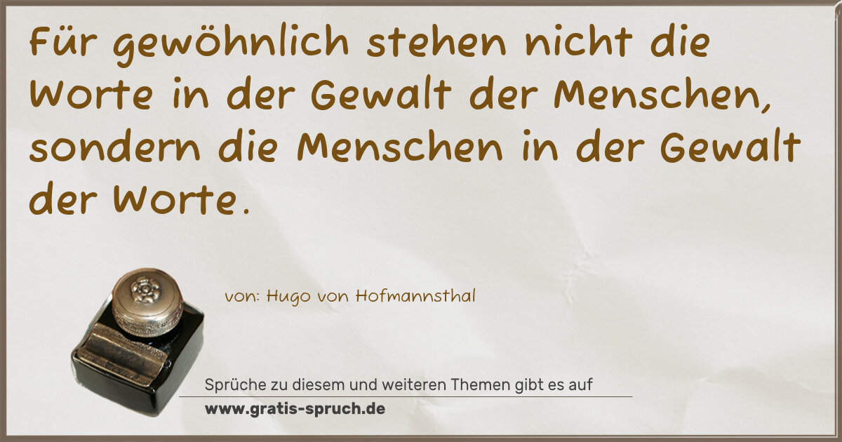 Für gewöhnlich stehen nicht die Worte in der Gewalt der Menschen, sondern die Menschen in der Gewalt der Worte.