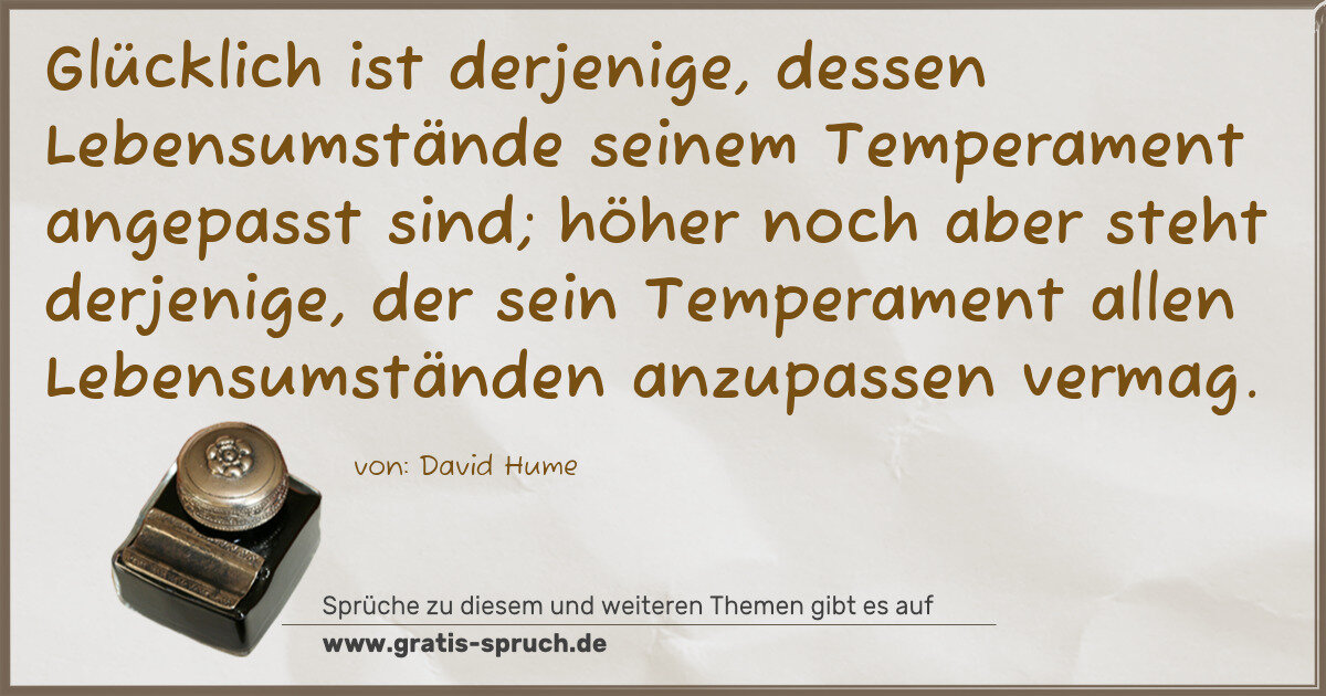 Glücklich ist derjenige, dessen Lebensumstände seinem Temperament angepasst sind; höher noch aber steht derjenige, der sein Temperament allen Lebensumständen anzupassen vermag.