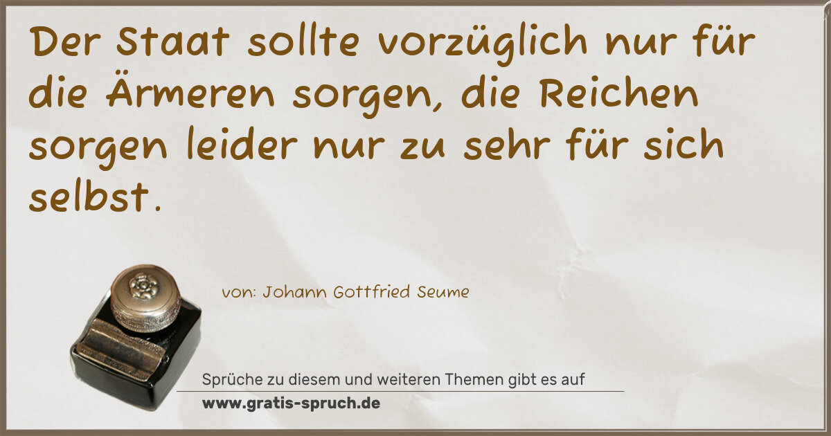 Der Staat sollte vorzüglich nur für die Ärmeren sorgen, die Reichen sorgen leider nur zu sehr für sich selbst.