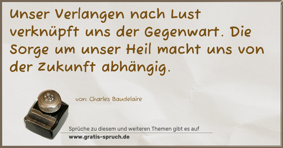 Unser Verlangen nach Lust verknüpft uns der Gegenwart. Die Sorge um unser Heil macht uns von der Zukunft abhängig.