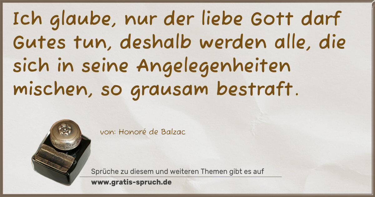 Ich glaube, nur der liebe Gott darf Gutes tun, deshalb werden alle, die sich in seine Angelegenheiten mischen, so grausam bestraft.