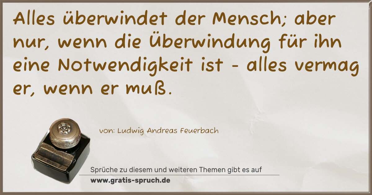 Alles überwindet der Mensch; aber nur, wenn die Überwindung für ihn eine Notwendigkeit ist - alles vermag er, wenn er muß.