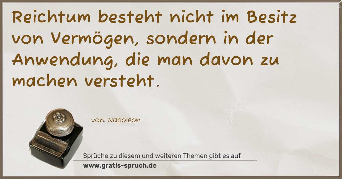 Reichtum besteht nicht im Besitz von Vermögen, sondern in der Anwendung, die man davon zu machen versteht.
