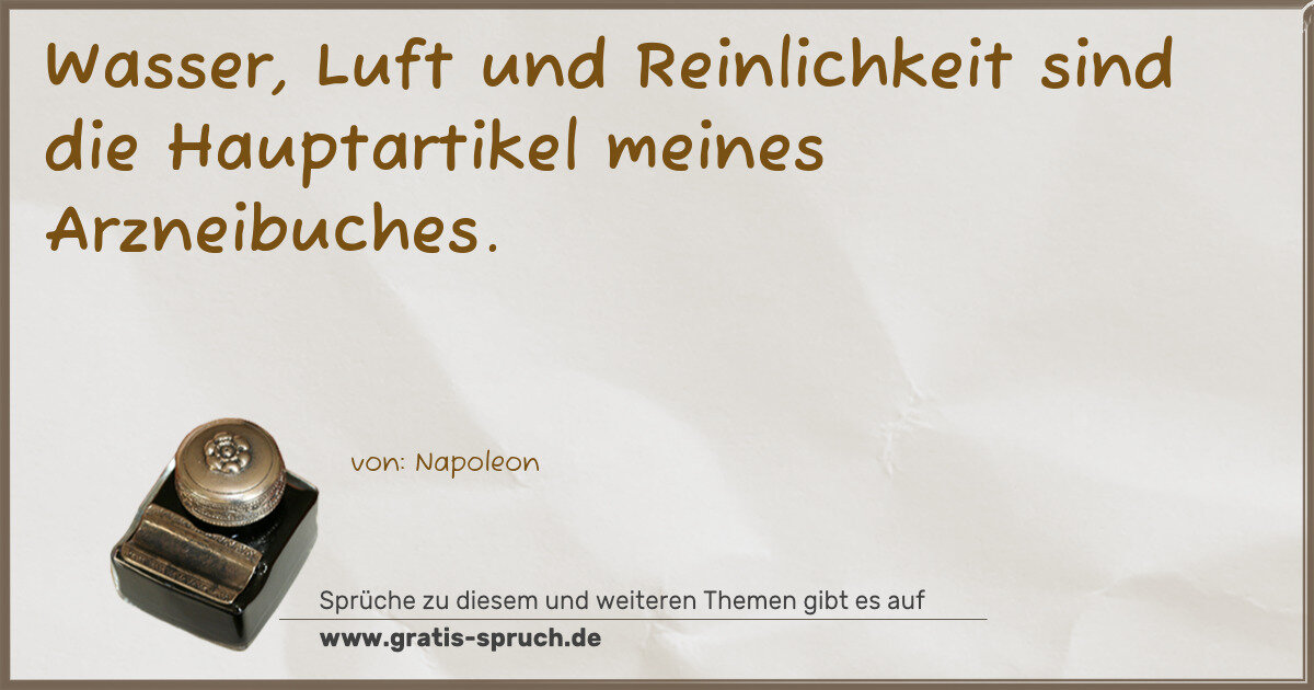 Wasser, Luft und Reinlichkeit sind die Hauptartikel meines Arzneibuches.