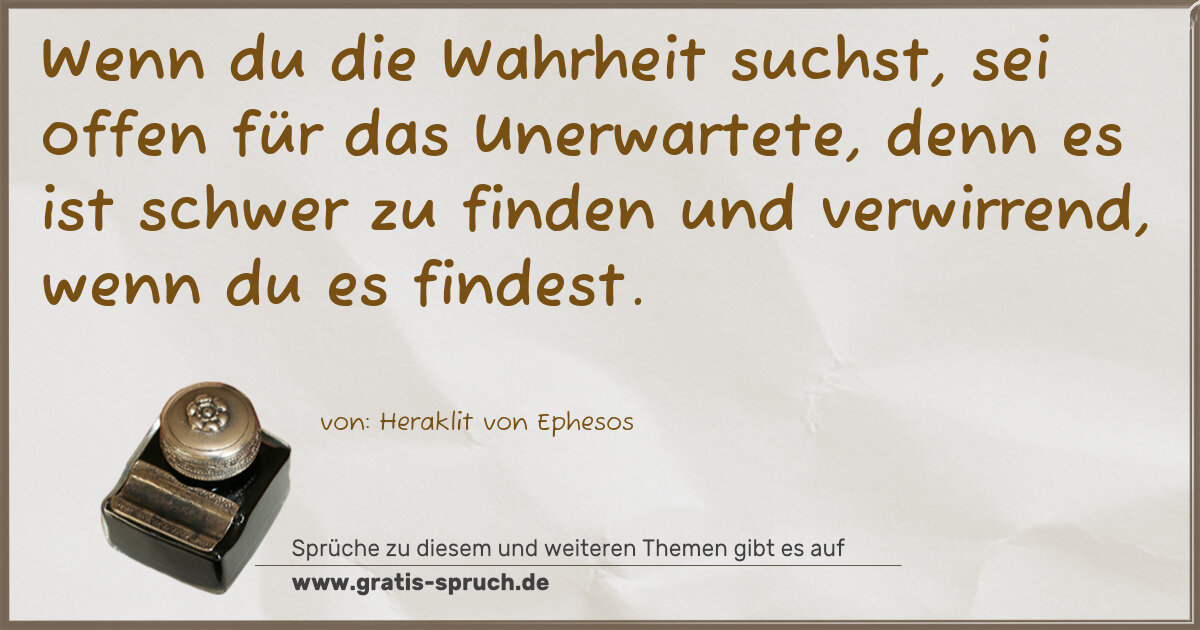 Wenn du die Wahrheit suchst, sei offen für das Unerwartete, denn es ist schwer zu finden und verwirrend, wenn du es findest.