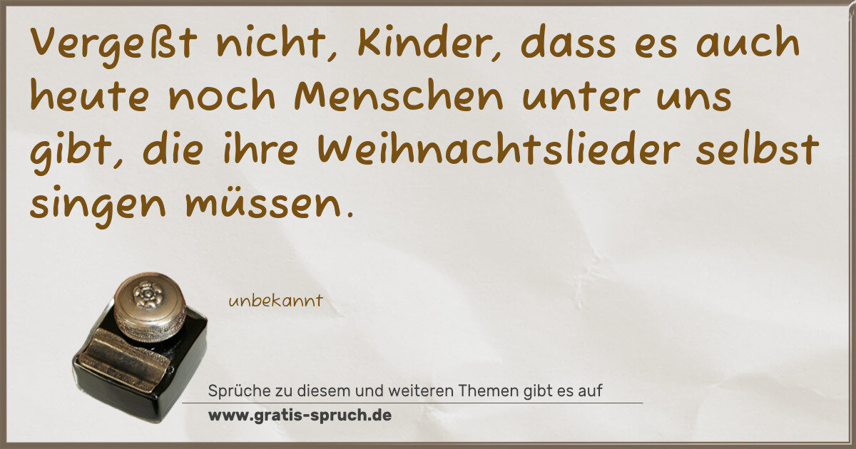 Vergeßt nicht, Kinder, dass es auch heute noch Menschen unter uns gibt, die ihre Weihnachtslieder selbst singen müssen.