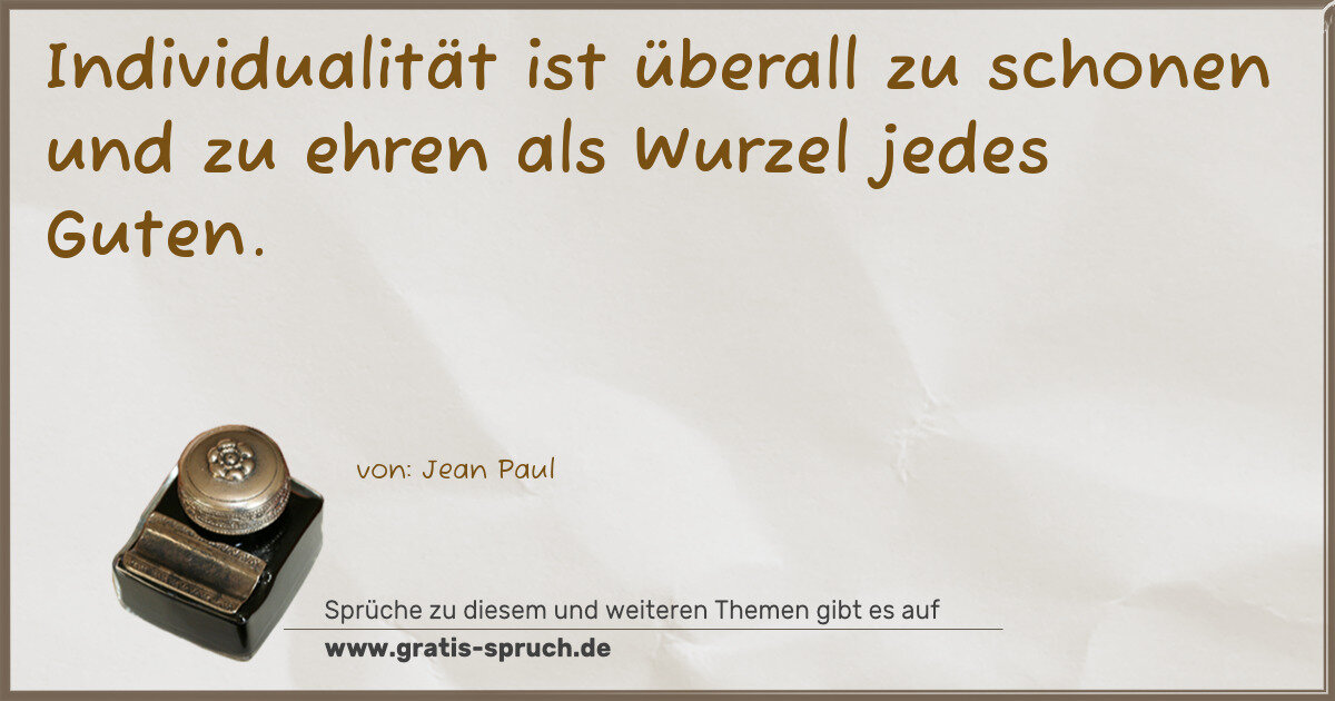 Individualität ist überall zu schonen und zu ehren als Wurzel jedes Guten.