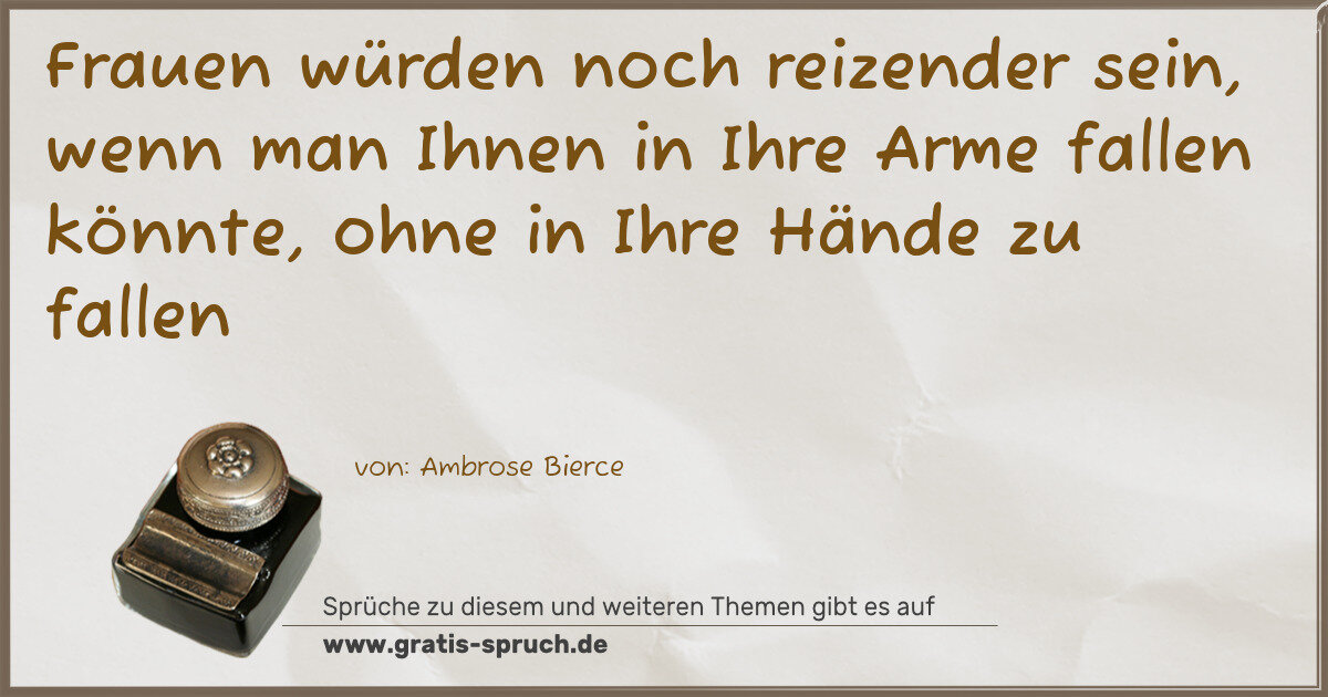 Frauen würden noch reizender sein, wenn man Ihnen in Ihre Arme fallen könnte, ohne in Ihre Hände zu fallen