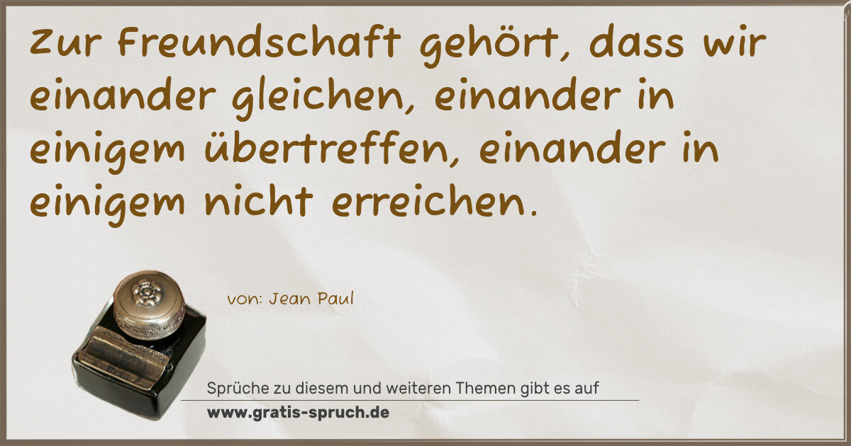 Zur Freundschaft gehört, dass wir einander gleichen, einander in einigem übertreffen, einander in einigem nicht erreichen.