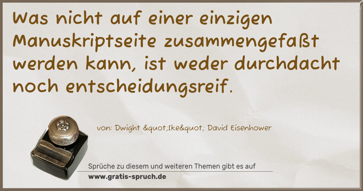 Was nicht auf einer einzigen Manuskriptseite zusammengefaßt werden kann, ist weder durchdacht noch entscheidungsreif.