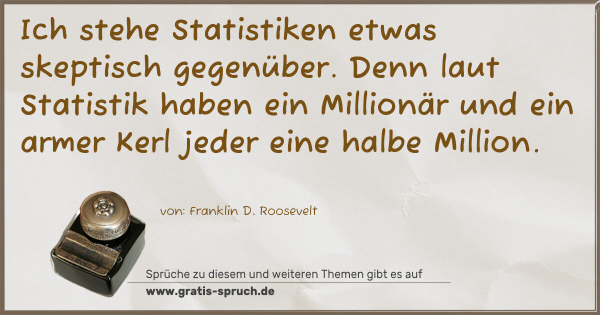 Ich stehe Statistiken etwas skeptisch gegenüber. Denn laut Statistik haben ein Millionär und ein armer Kerl jeder eine halbe Million.