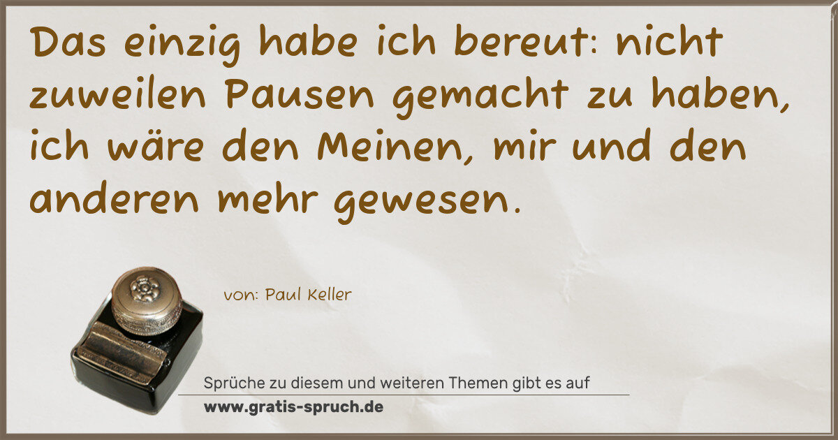 Das einzig habe ich bereut: nicht zuweilen Pausen gemacht zu haben, ich wäre den Meinen, mir und den anderen mehr gewesen.