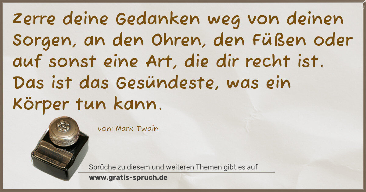 Zerre deine Gedanken weg von deinen Sorgen, an den Ohren, den Füßen oder auf sonst eine Art, die dir recht ist. Das ist das Gesündeste, was ein Körper tun kann.