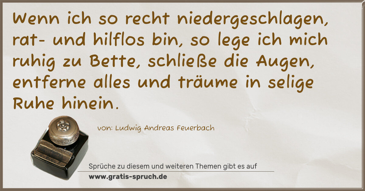 Wenn ich so recht niedergeschlagen, rat- und hilflos bin, so lege ich mich ruhig zu Bette, schließe die Augen, entferne alles und träume in selige Ruhe hinein.