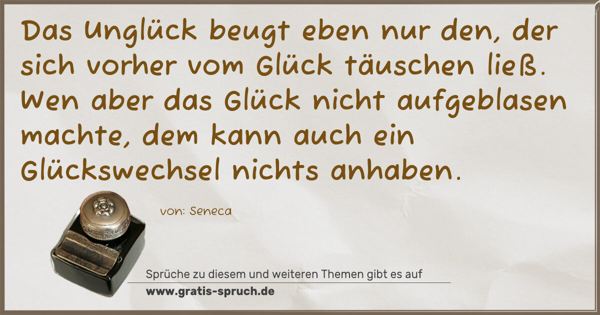Das Unglück beugt eben nur den, der sich vorher vom Glück täuschen ließ. Wen aber das Glück nicht aufgeblasen machte, dem kann auch ein Glückswechsel nichts anhaben.