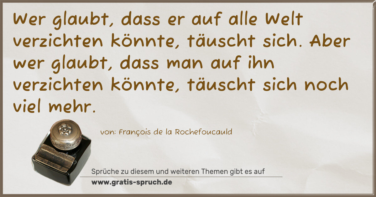 Wer glaubt, dass er auf alle Welt verzichten könnte, täuscht sich. Aber wer glaubt, dass man auf ihn verzichten könnte, täuscht sich noch viel mehr.