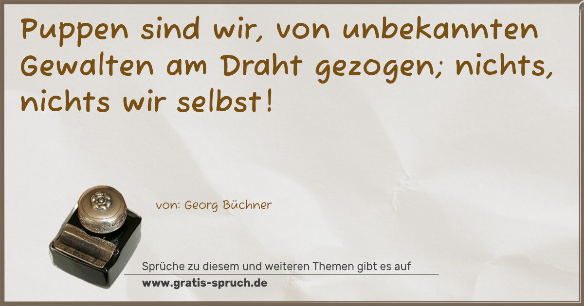 Puppen sind wir, von unbekannten Gewalten am Draht gezogen; nichts, nichts wir selbst!
