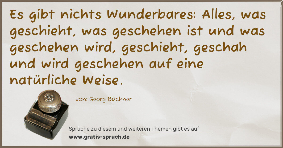 Es gibt nichts Wunderbares: Alles, was geschieht, was geschehen ist und was geschehen wird, geschieht, geschah und wird geschehen auf eine natürliche Weise.