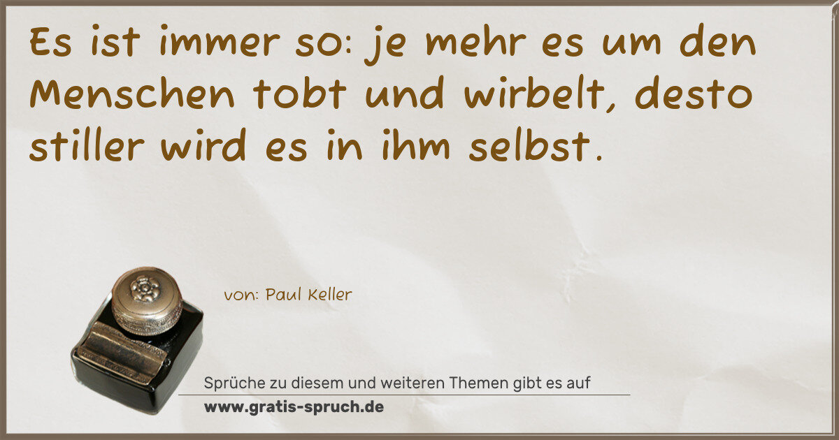 Es ist immer so: je mehr es um den Menschen tobt und wirbelt, desto stiller wird es in ihm selbst.