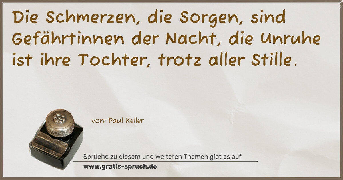 Die Schmerzen, die Sorgen, sind Gefährtinnen der Nacht, die Unruhe ist ihre Tochter, trotz aller Stille.