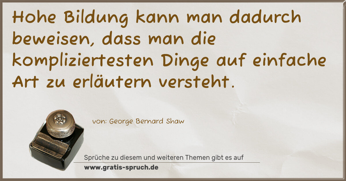 Hohe Bildung kann man dadurch beweisen, dass man die kompliziertesten Dinge auf einfache Art zu erläutern versteht.