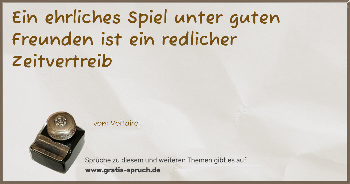 Ein ehrliches Spiel unter guten Freunden ist ein redlicher Zeitvertreib