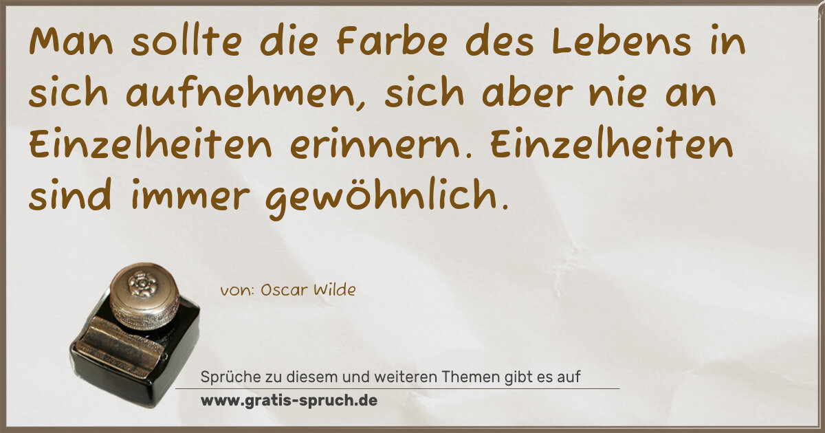 Man sollte die Farbe des Lebens in sich aufnehmen, sich aber nie an Einzelheiten erinnern. Einzelheiten sind immer gewöhnlich.