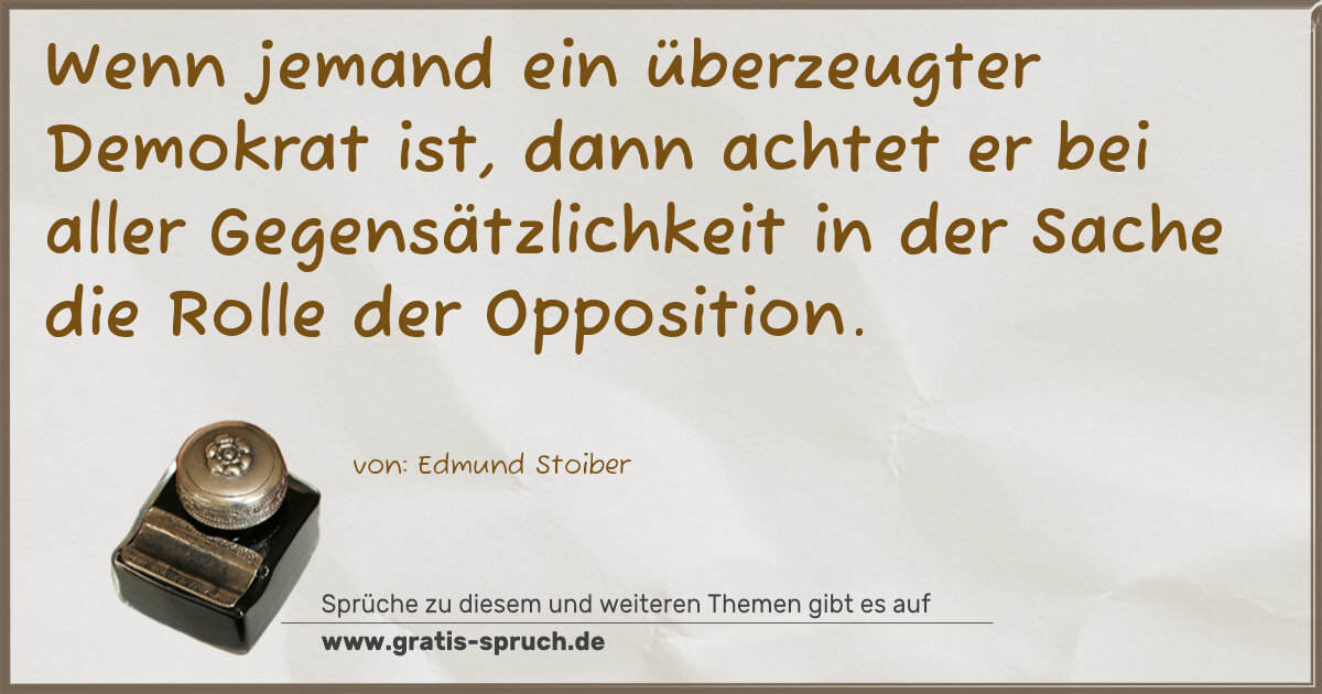 Wenn jemand ein überzeugter Demokrat ist, dann achtet er bei aller Gegensätzlichkeit in der Sache die Rolle der Opposition.