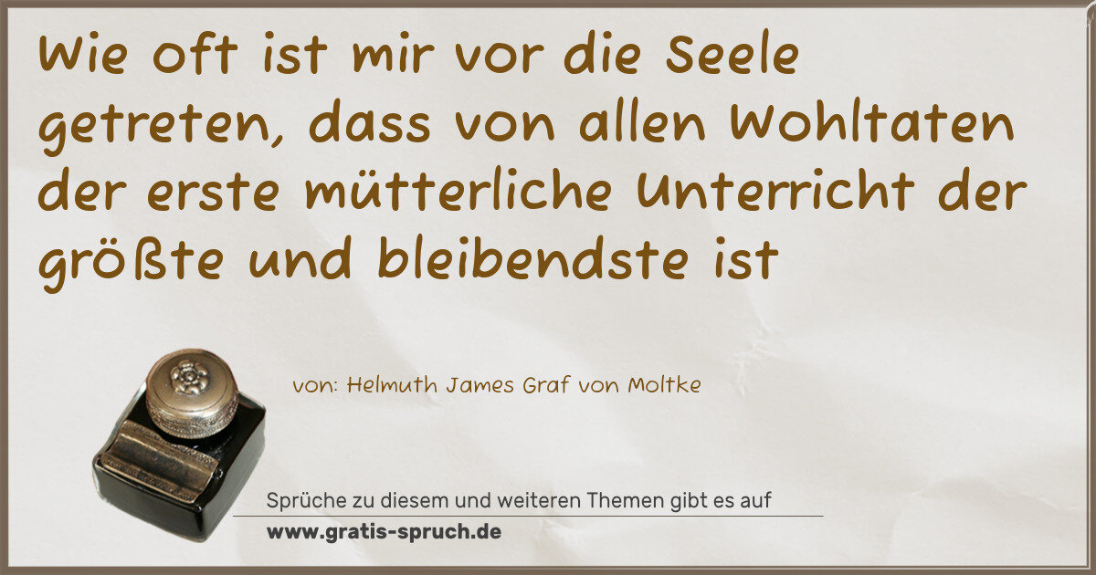 Wie oft ist mir vor die Seele getreten, dass von allen Wohltaten der erste mütterliche Unterricht der größte und bleibendste ist