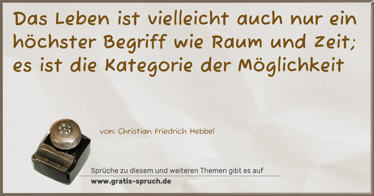 Das Leben ist vielleicht auch nur ein höchster Begriff wie Raum und Zeit; es ist die Kategorie der Möglichkeit
