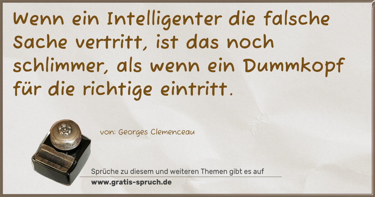 Wenn ein Intelligenter die falsche Sache vertritt, ist das noch schlimmer, als wenn ein Dummkopf für die richtige eintritt.