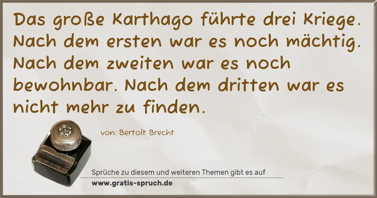 Das große Karthago führte drei Kriege. Nach dem ersten war es noch mächtig. Nach dem zweiten war es noch bewohnbar. Nach dem dritten war es nicht mehr zu finden.