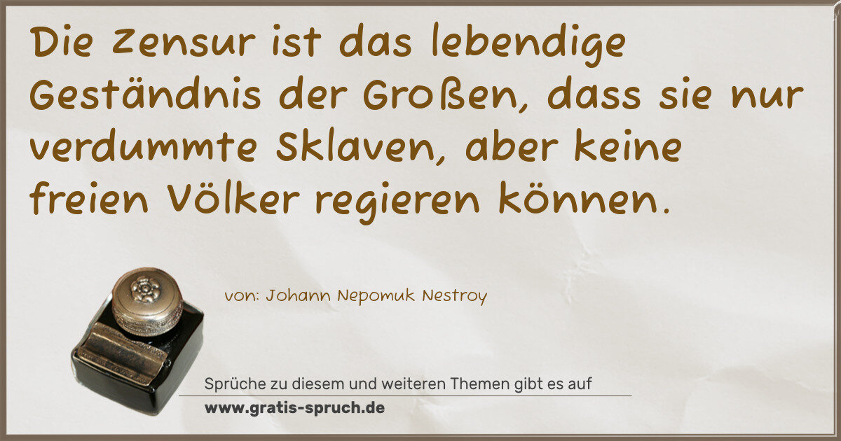 Die Zensur ist das lebendige Geständnis der Großen, dass sie nur verdummte Sklaven, aber keine freien Völker regieren können.