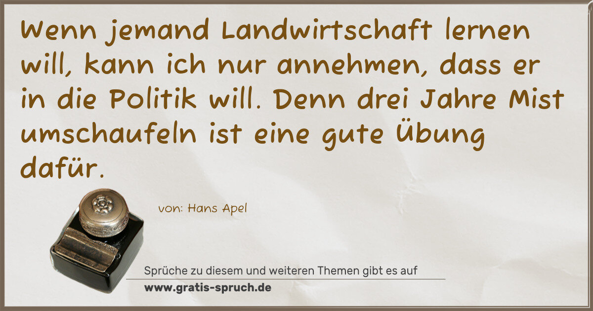 Wenn jemand Landwirtschaft lernen will, kann ich nur annehmen, dass er in die Politik will. Denn drei Jahre Mist umschaufeln ist eine gute Übung dafür.