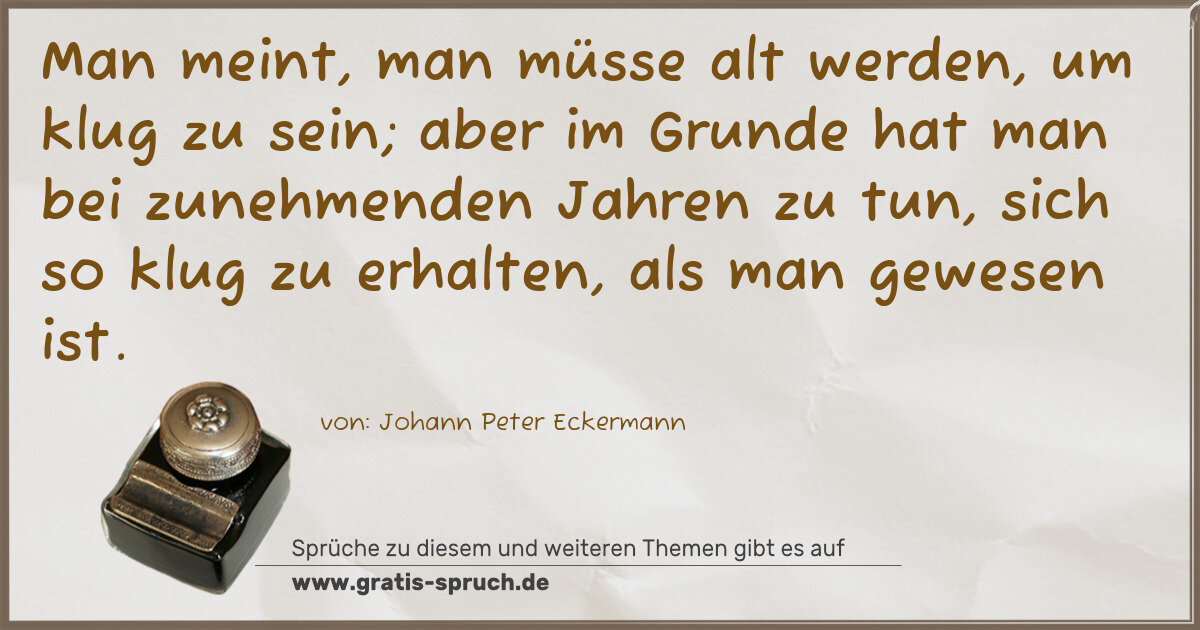 Man meint, man müsse alt werden, um klug zu sein; aber im Grunde hat man bei zunehmenden Jahren zu tun, sich so klug zu erhalten, als man gewesen ist.