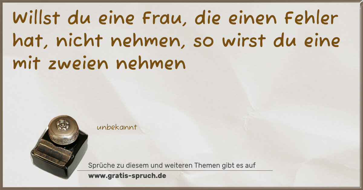 Willst du eine Frau, die einen Fehler hat, nicht nehmen, so wirst du eine mit zweien nehmen