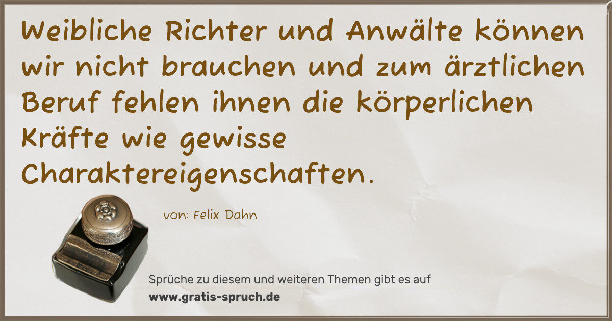 Weibliche Richter und Anwälte können wir nicht brauchen und zum ärztlichen Beruf fehlen ihnen die körperlichen Kräfte wie gewisse Charaktereigenschaften.