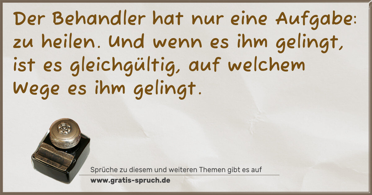 Der Behandler hat nur eine Aufgabe: zu heilen. Und wenn es ihm gelingt, ist es gleichgültig, auf welchem Wege es ihm gelingt.
