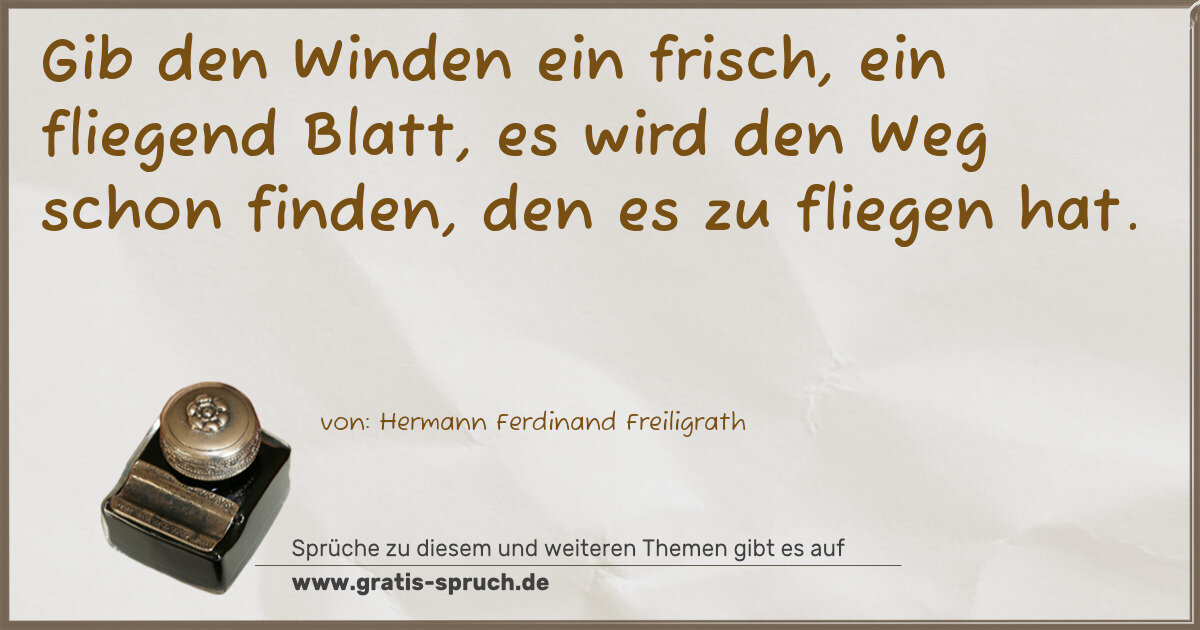 Gib den Winden ein frisch, ein fliegend Blatt, es wird den Weg schon finden, den es zu fliegen hat.