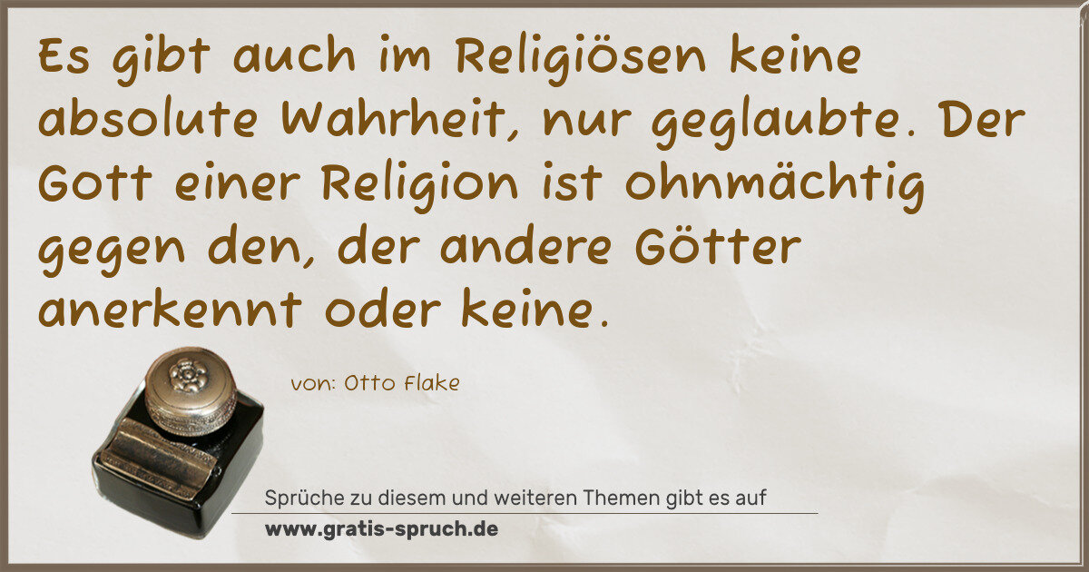 Es gibt auch im Religiösen keine absolute Wahrheit, nur geglaubte. Der Gott einer Religion ist ohnmächtig gegen den, der andere Götter anerkennt oder keine.