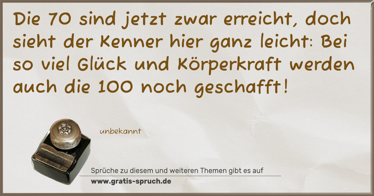 Die 70 sind jetzt zwar erreicht, doch sieht der Kenner hier ganz leicht: Bei so viel Glück und Körperkraft werden auch die 100 noch geschafft!