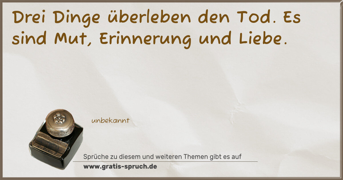 Drei Dinge überleben den Tod. Es sind Mut, Erinnerung und Liebe.