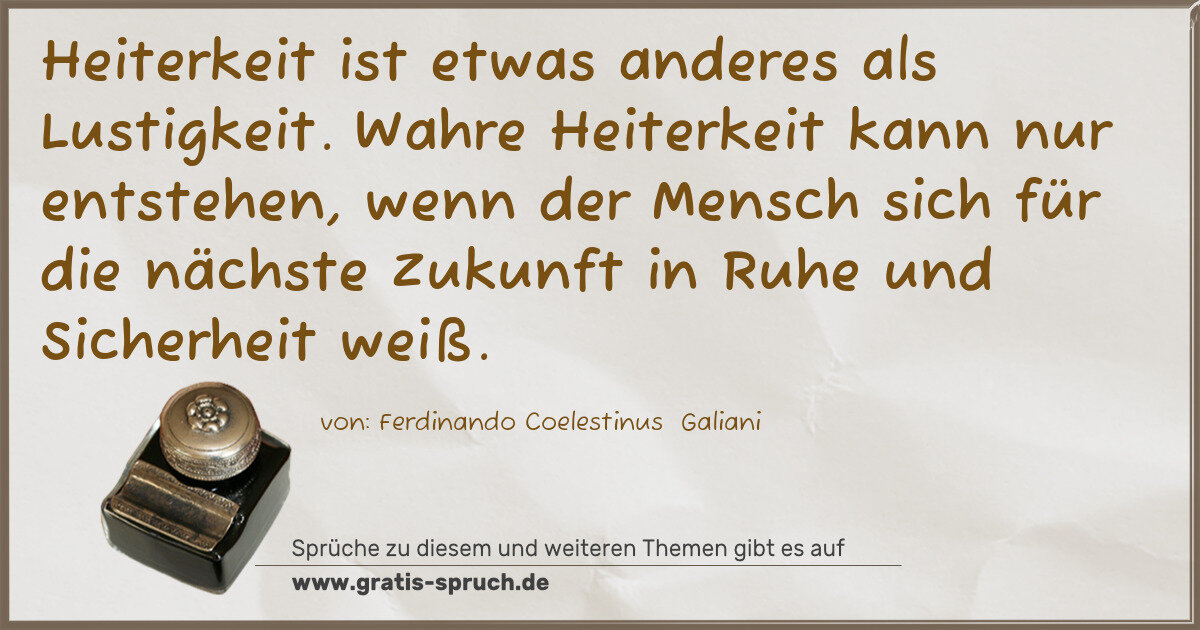 Heiterkeit ist etwas anderes als Lustigkeit. Wahre Heiterkeit kann nur entstehen, wenn der Mensch sich für die nächste Zukunft in Ruhe und Sicherheit weiß.
