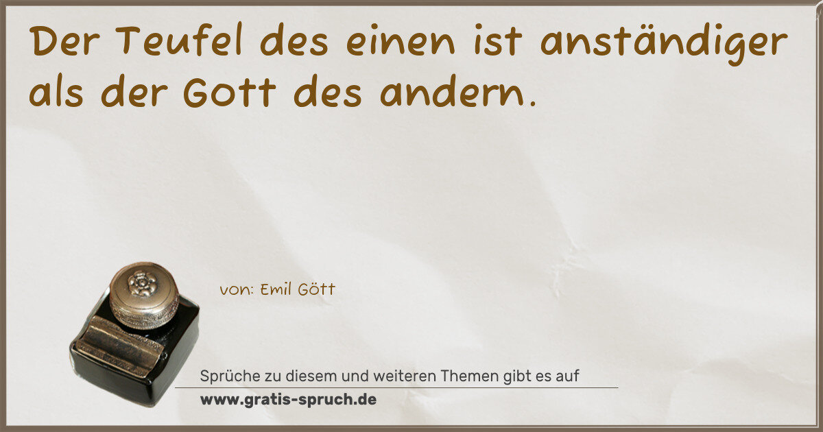 Der Teufel des einen ist anständiger als der Gott des andern.