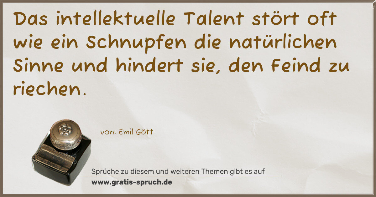 Das intellektuelle Talent stört oft wie ein Schnupfen die natürlichen Sinne und hindert sie, den Feind zu riechen.