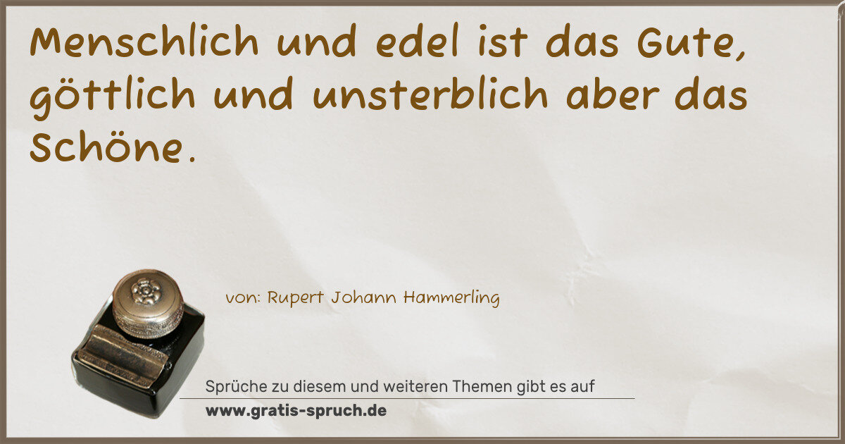 Menschlich und edel ist das Gute, göttlich und unsterblich aber das Schöne.